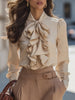 Maeyira presents the Lotus Leaf Collar Satin Shirt—a chic and elegant commuter blouse designed for the modern woman who values subtle sophistication. Crafted from high-quality satin, this shirt seamlessly combines professional polish with a touch of feminine flair. The standout feature is the distinctive lotus leaf collar, which adds a romantic, delicate touch to the classic silhouette, while clean lines and a modest design ensure an effortless sense of elegance.